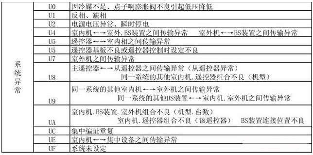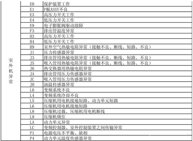 中央空调常见的故障代码